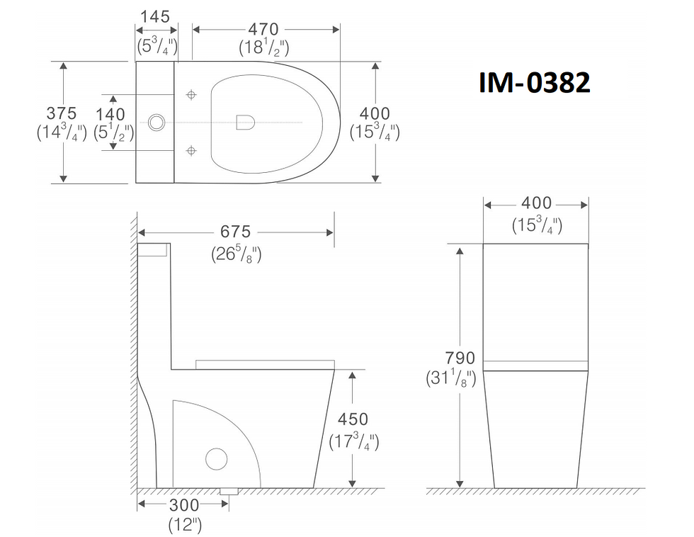 One-Piece 1.1/1.6 GPF Dual Flush Toilet #IM-12050